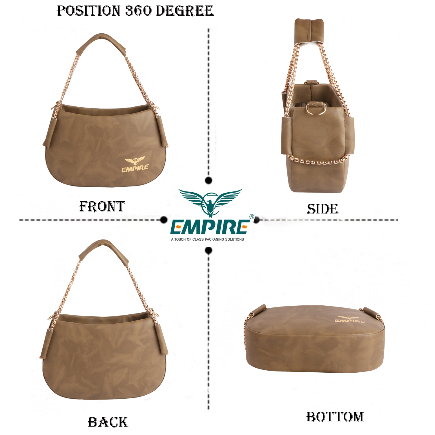 The Empire Elegant Chain Strap Shoulder Bag in Khaki brings together the raw, rugged spirit of earthy tones with the refined elegance of luxury craftsmanship. This is the bag for the woman who moves through the world with effortless confidence — practical yet polished, grounded yet glamorous.