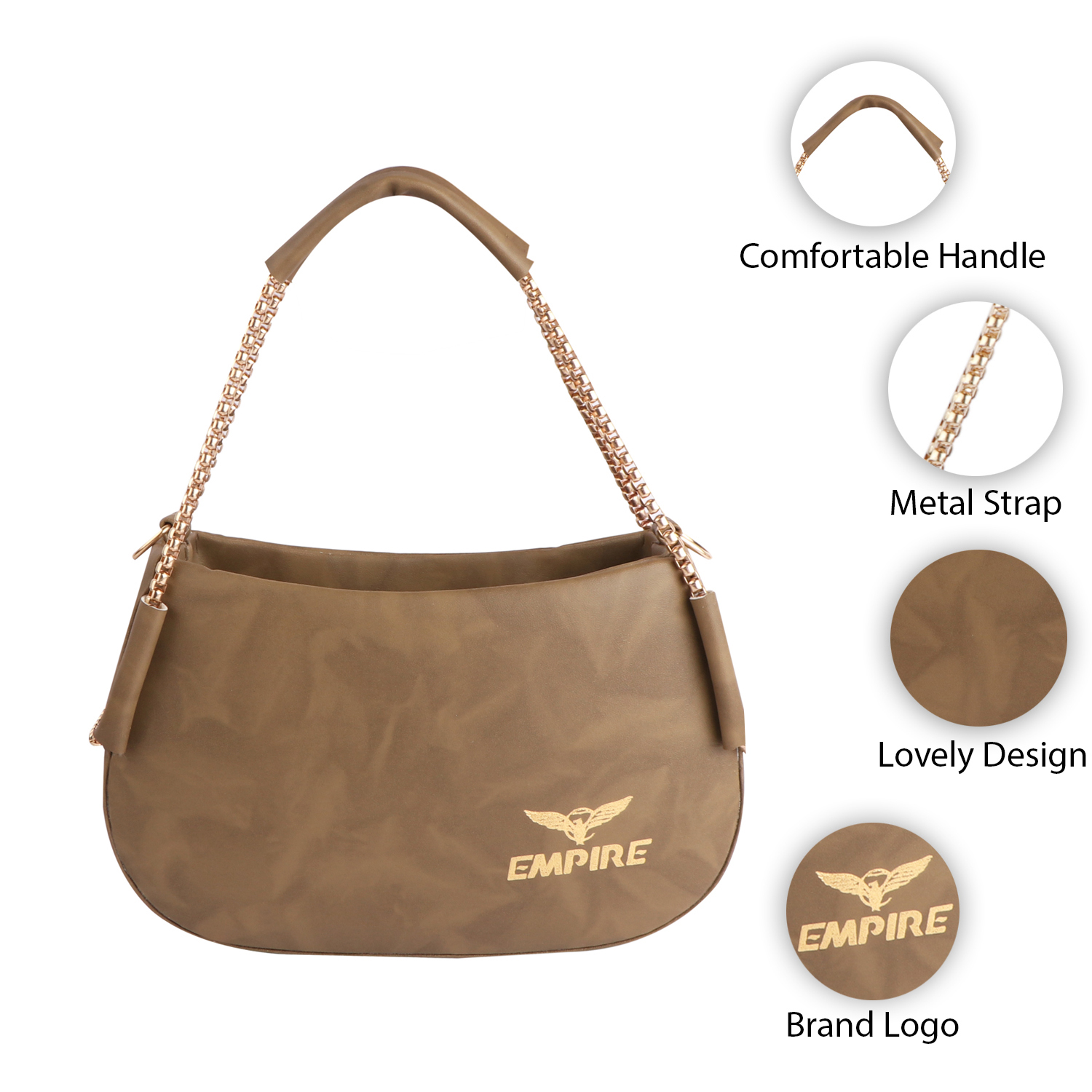 Empire Elegant Chain Strap Shoulder Bag – Khaki
