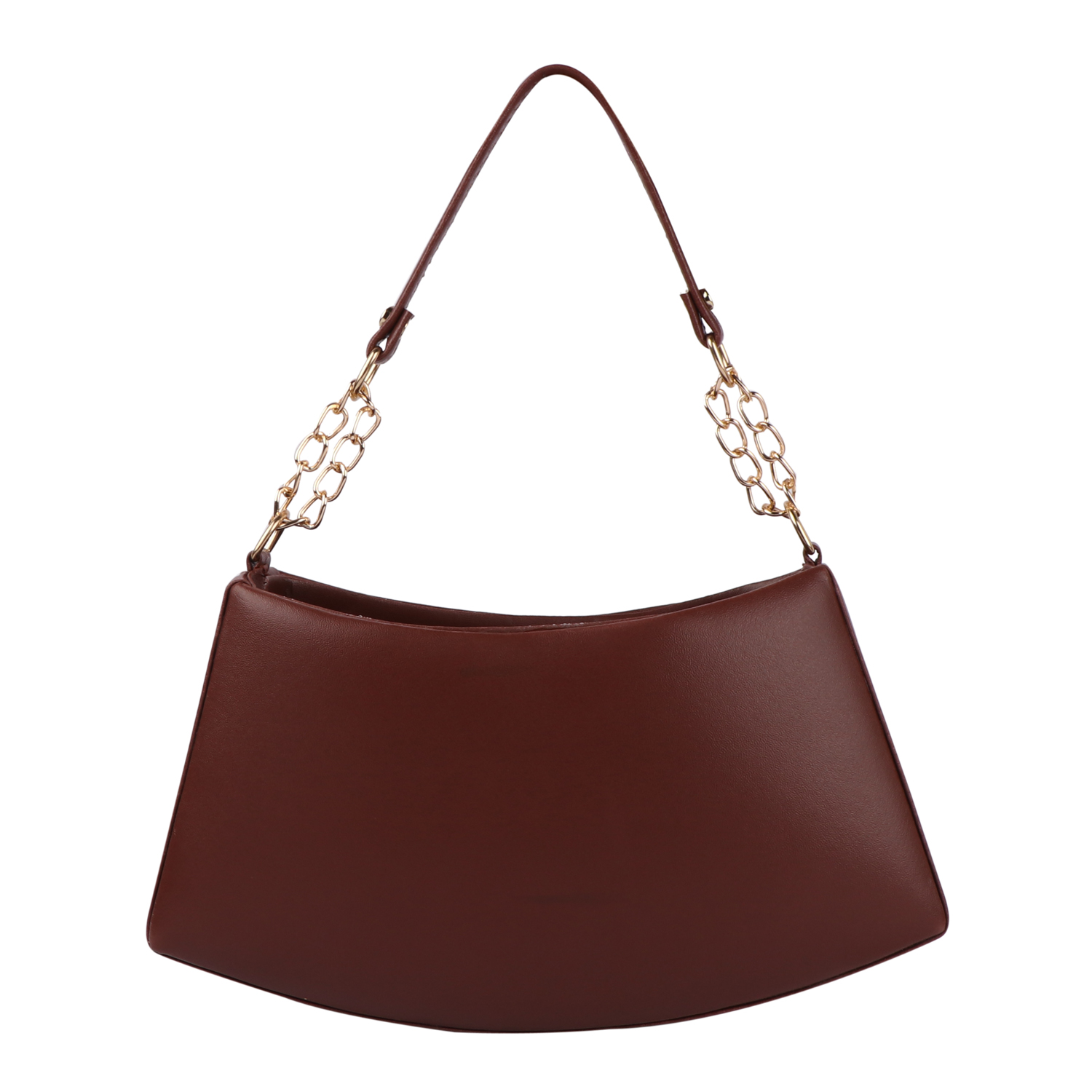The deep, warm brown vegan leather gives the crescent trapeze silhouette a richness and depth that feels both premium and deeply inviting. Brown is the colour of luxury leather at its finest — warm, grounded, and enduringly beautiful — and across the smooth, clean surface of this bag, it reaches its most expressive and refined form. Every angle reveals the warmth and richness of the brown tone, while the clean unembossed surface lets the quality of the material speak entirely for itself.