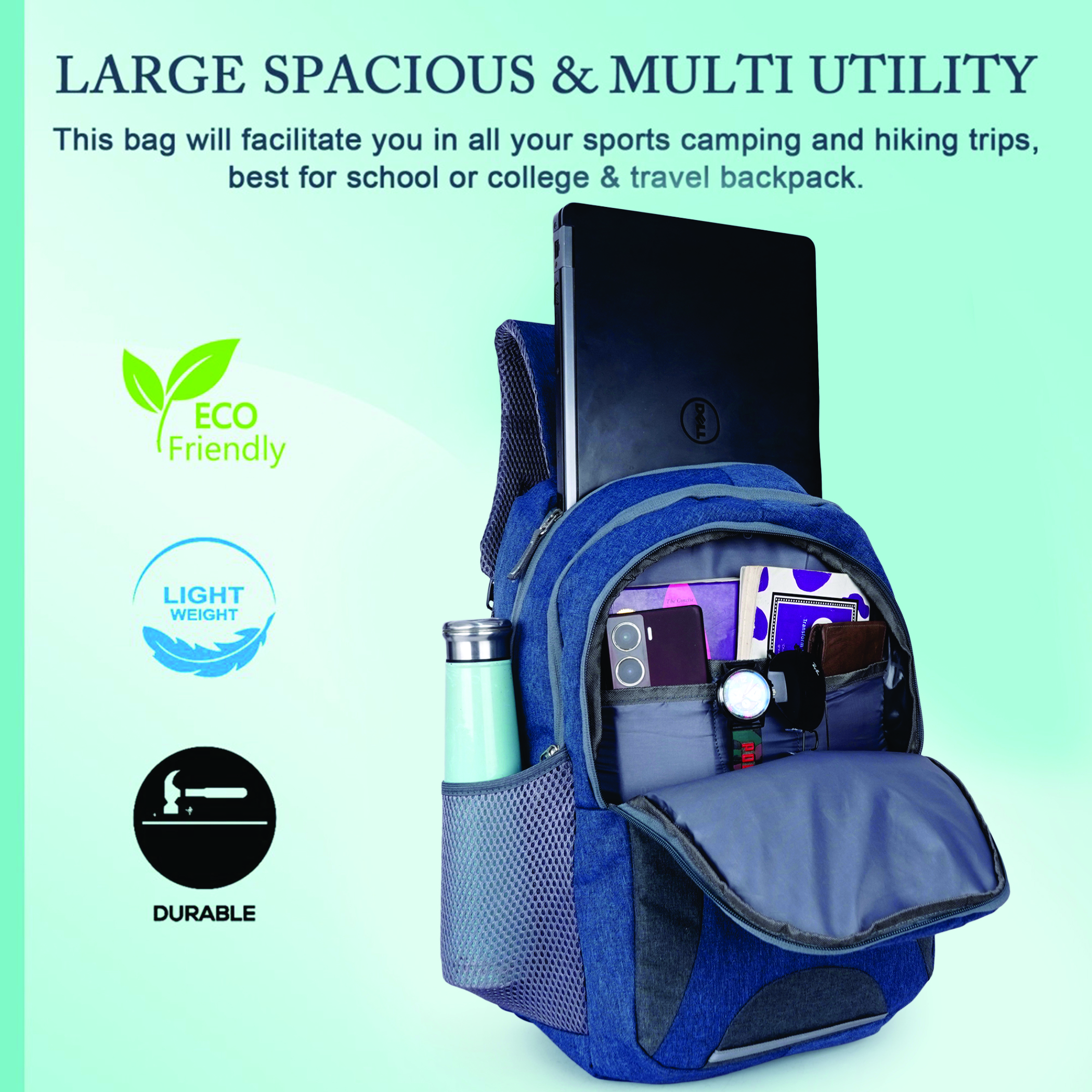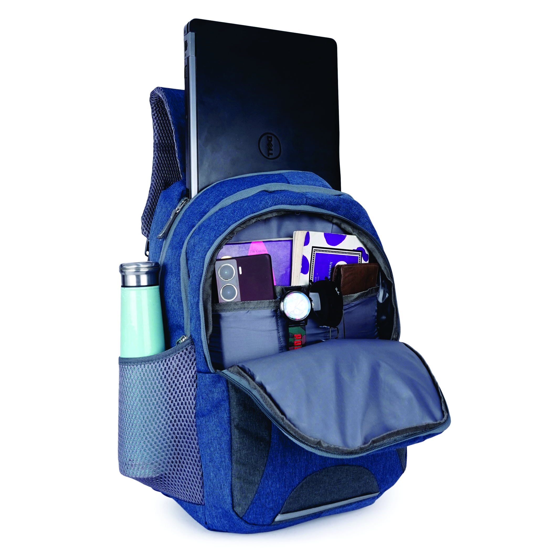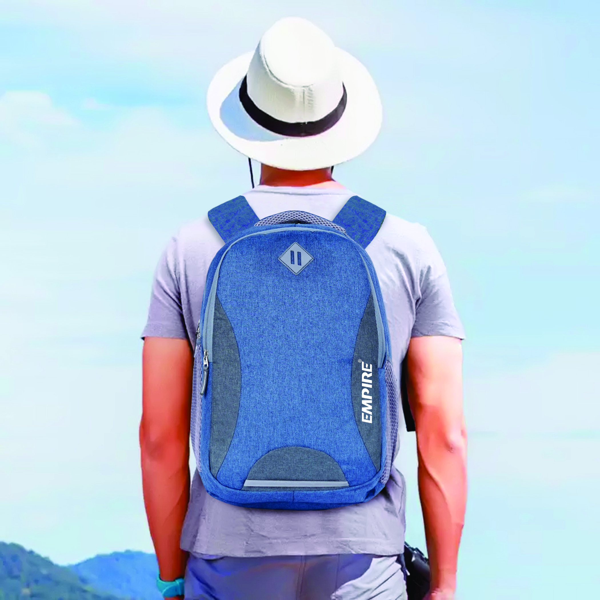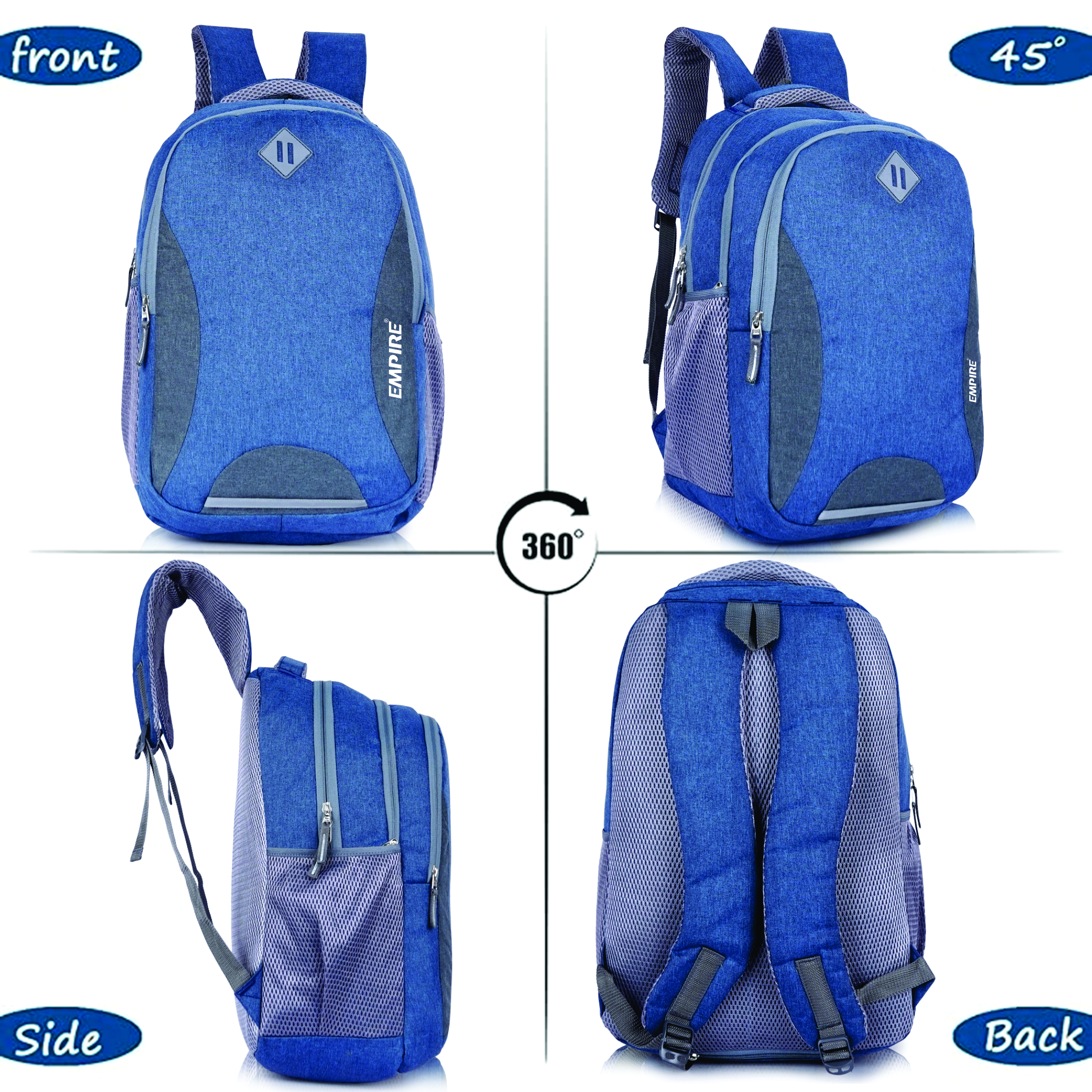 Every feature is thoughtfully executed β a spacious main compartment with dedicated padded laptop sleeve, a front organiser compartment, and mesh side water bottle pockets ensure complete daily organisation. The padded mesh shoulder straps and ventilated mesh back panel deliver all-day ergonomic comfort, while the padded top handle adds convenient grab-and-go versatility. The reflective safety strip at the front base provides essential low-light visibility, and the grey Empire logo patch with white EMPIRE text brands this backpack with quiet, confident prestige.
