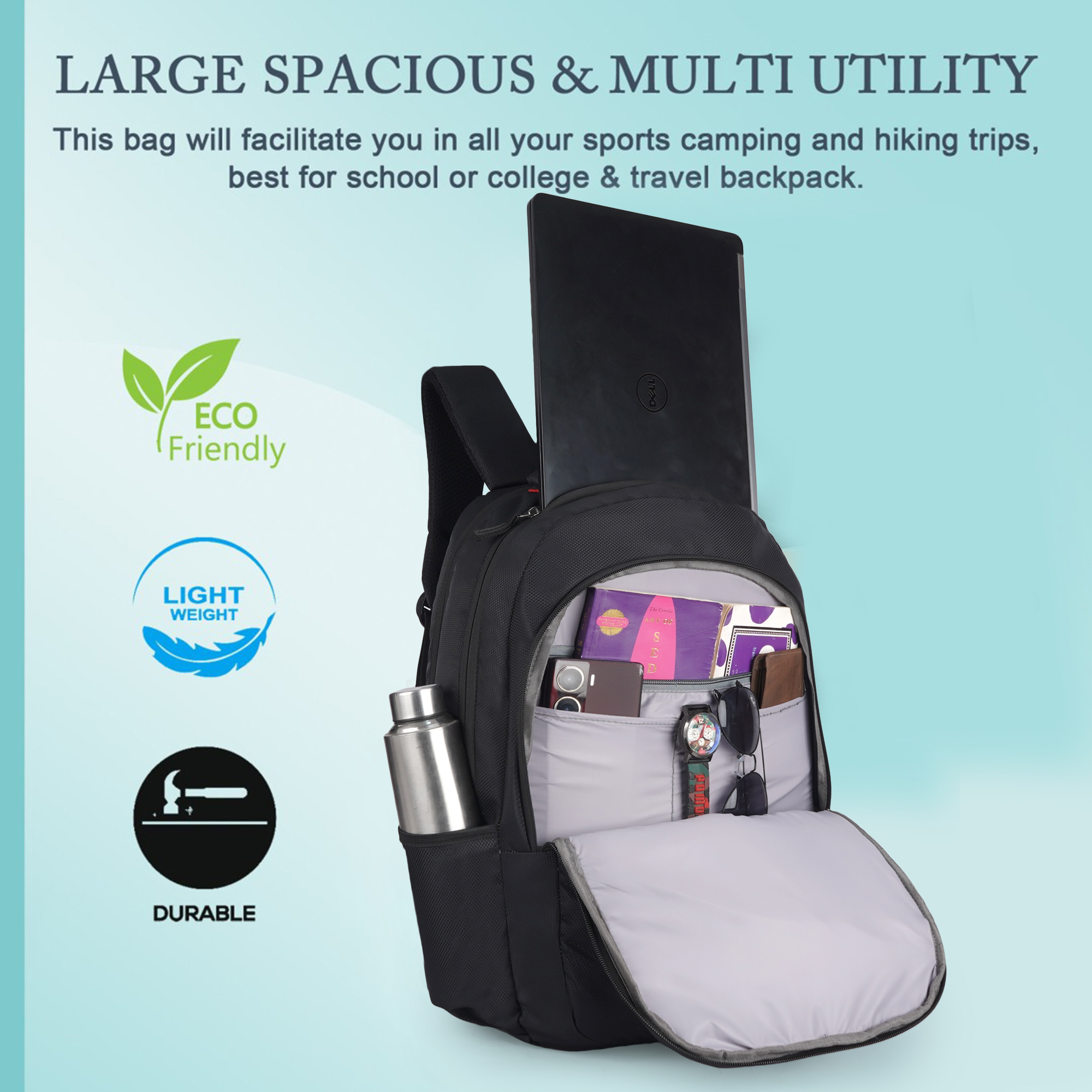 Bold, built tough, and brilliantly organized — the Empire Fashion Black Sporty Laptop Backpack is the ultimate everyday companion for the modern achiever.