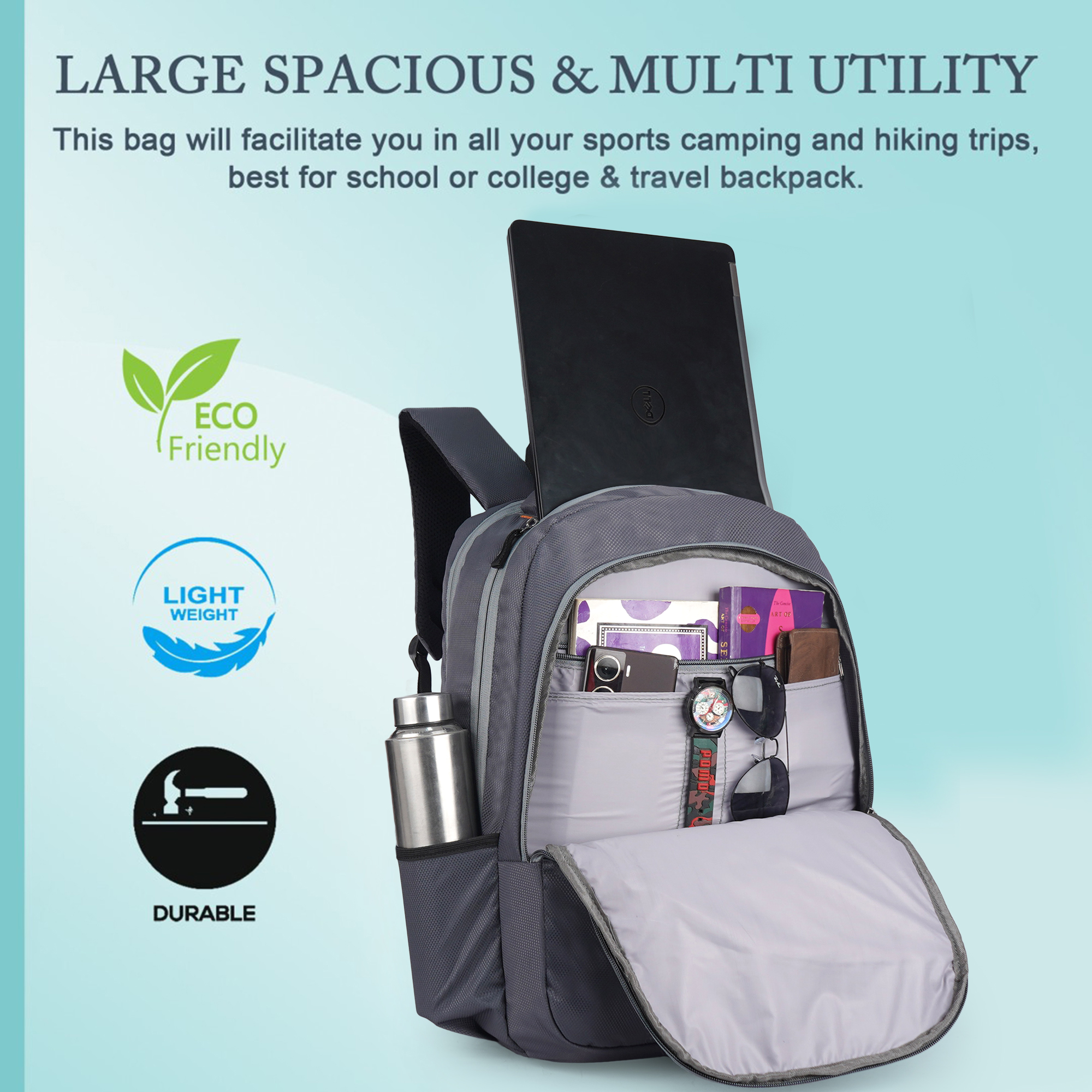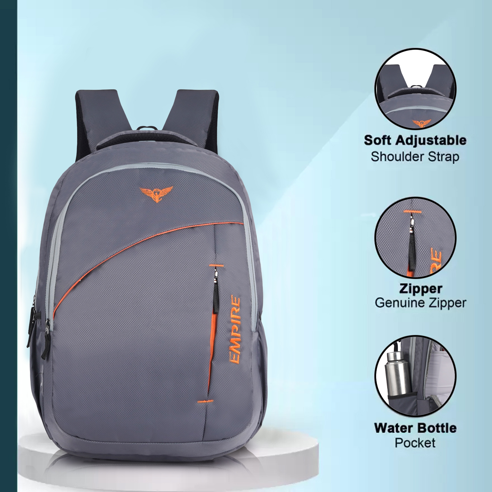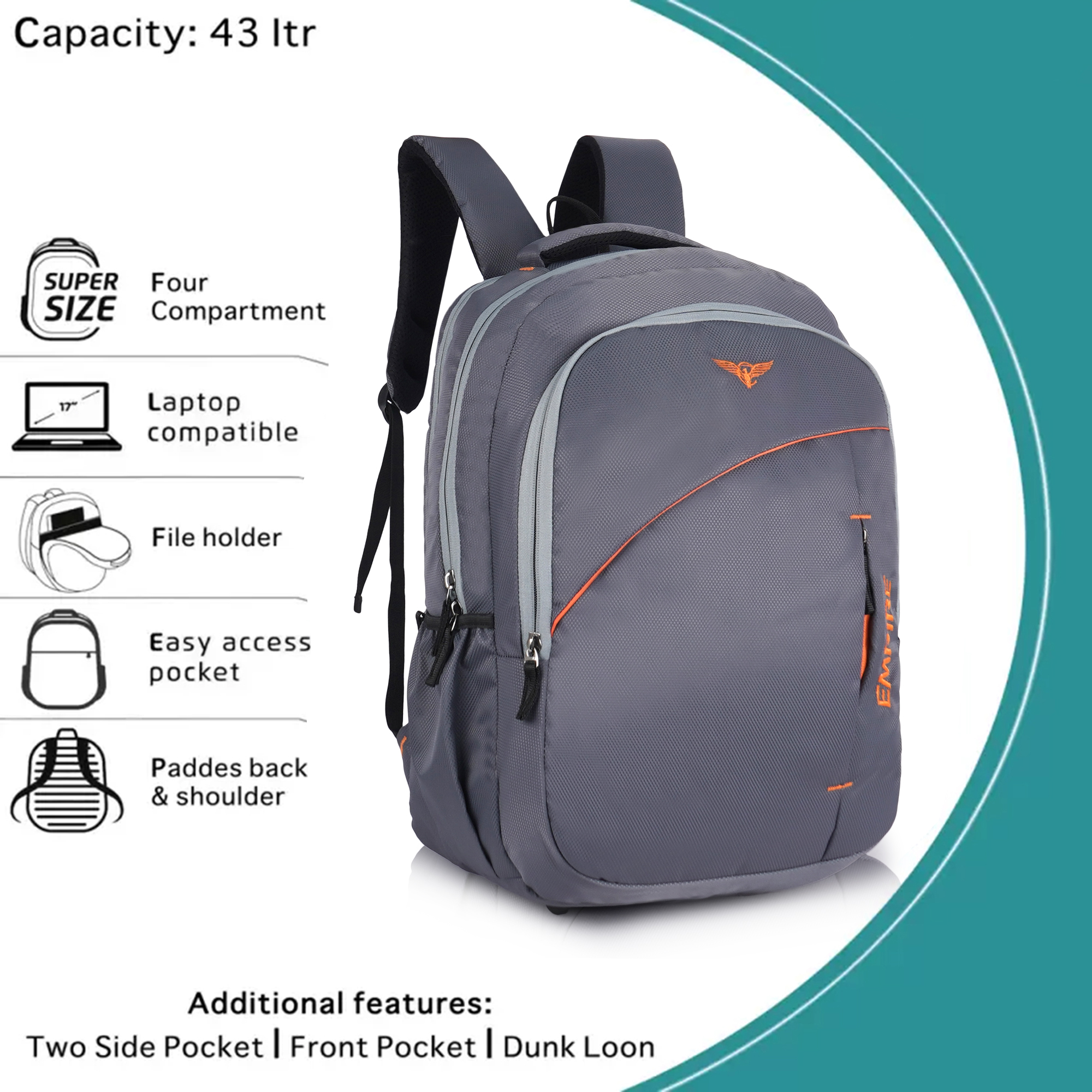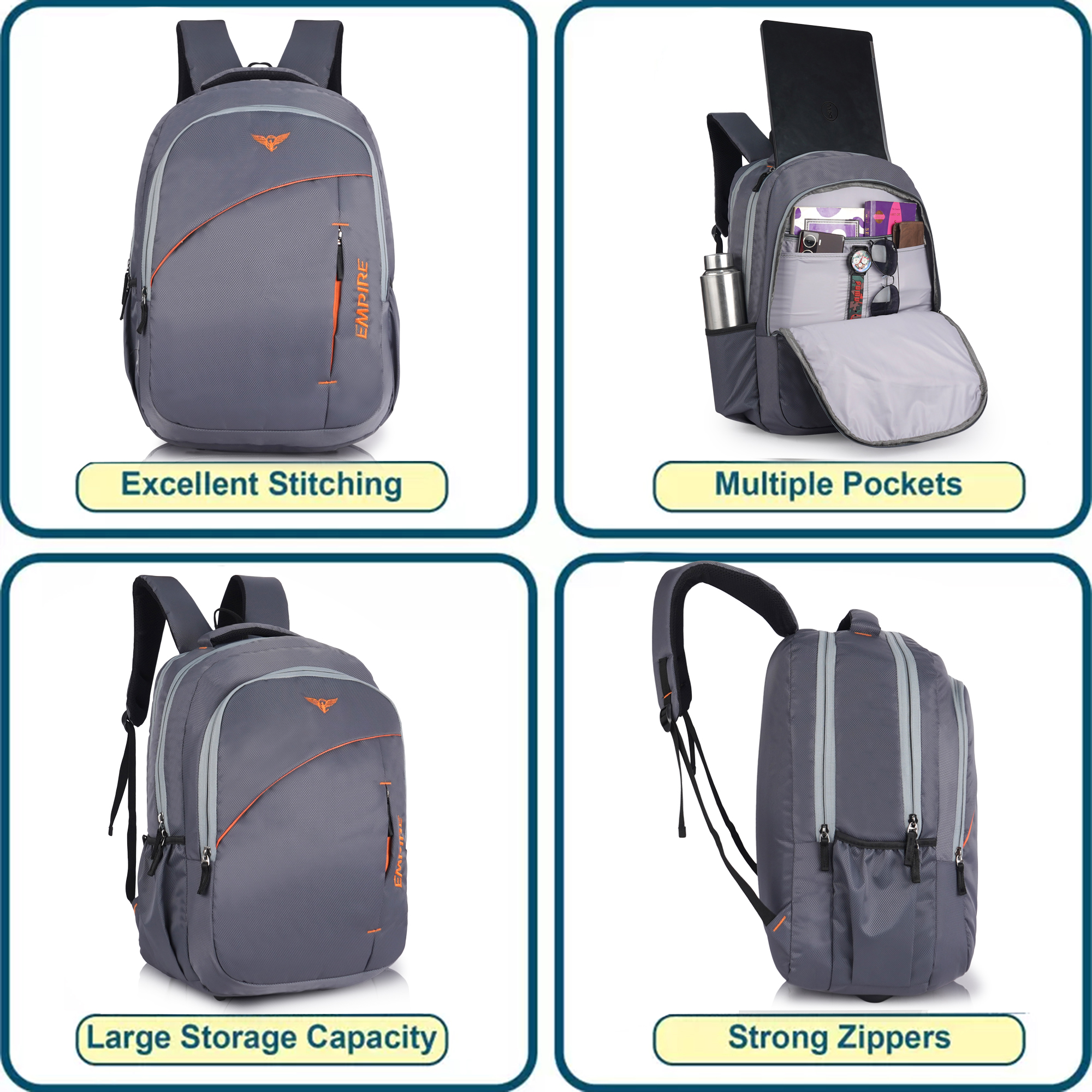 Be the first to review “Empire Fashion Laptop Backpack | Grey | Sporty Diagonal Accent Travel & College Bag with Multiple Compartments”