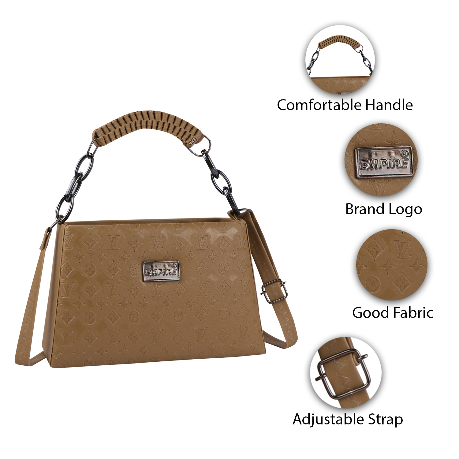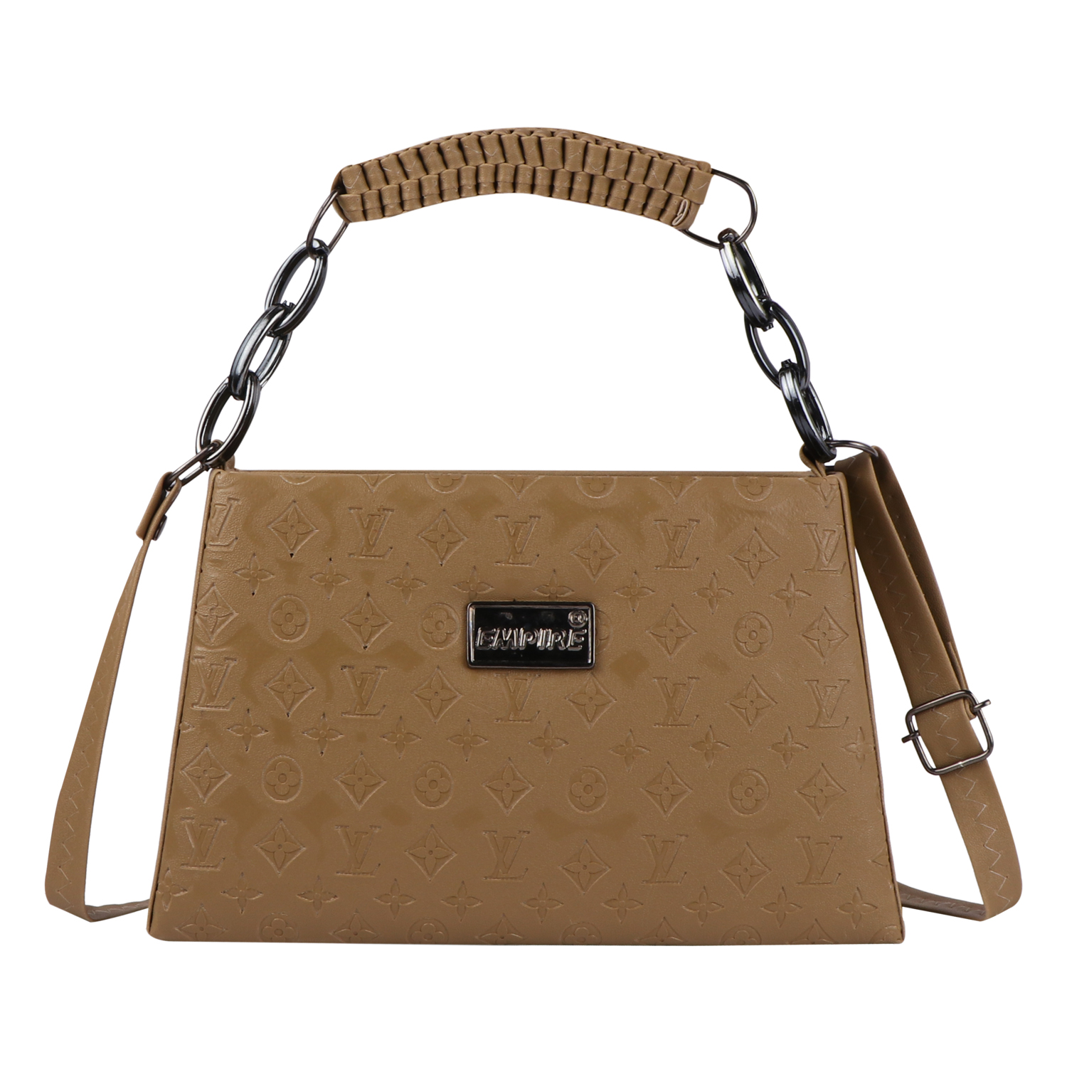 Empire Fashion Monogram Embossed Structured Handbag – Khaki