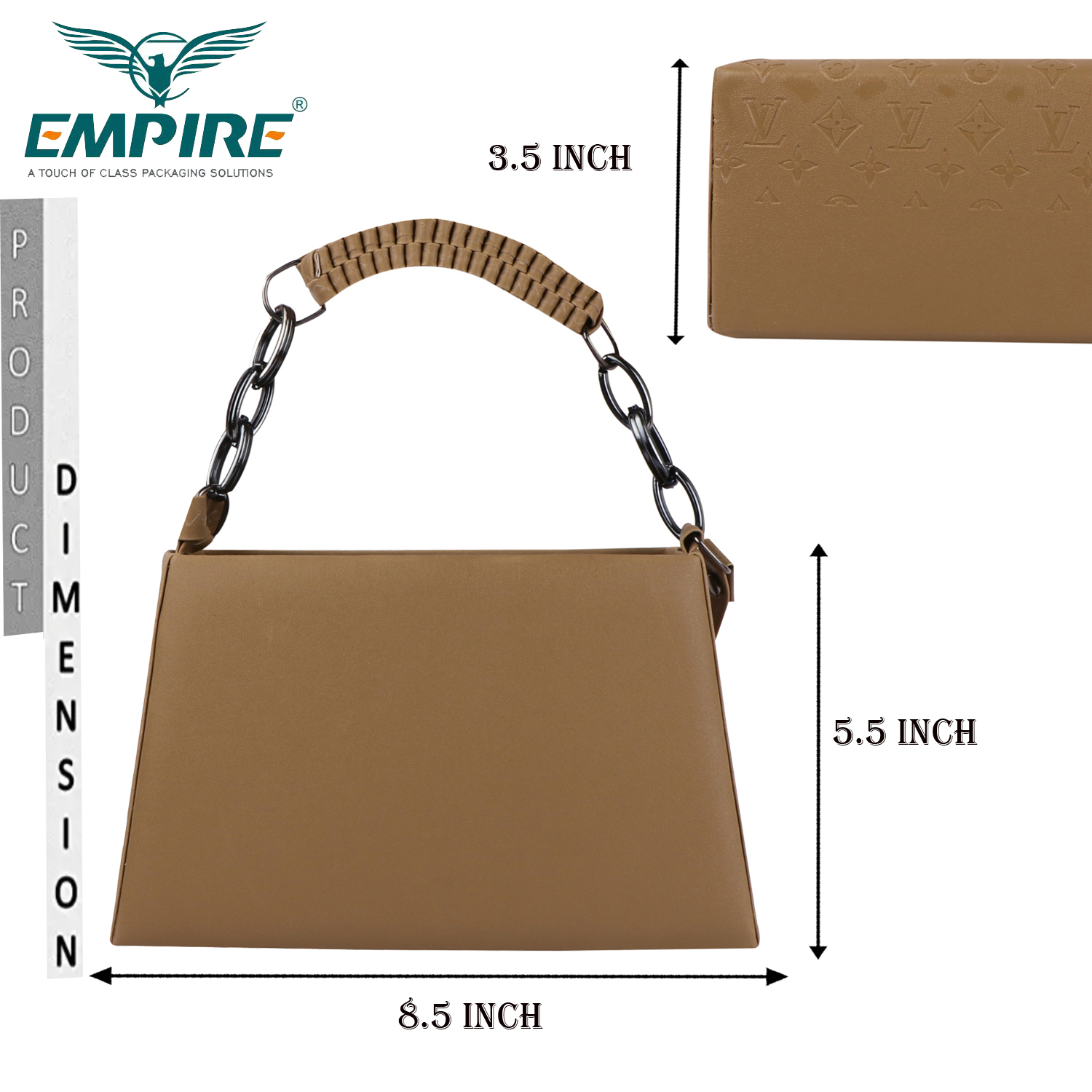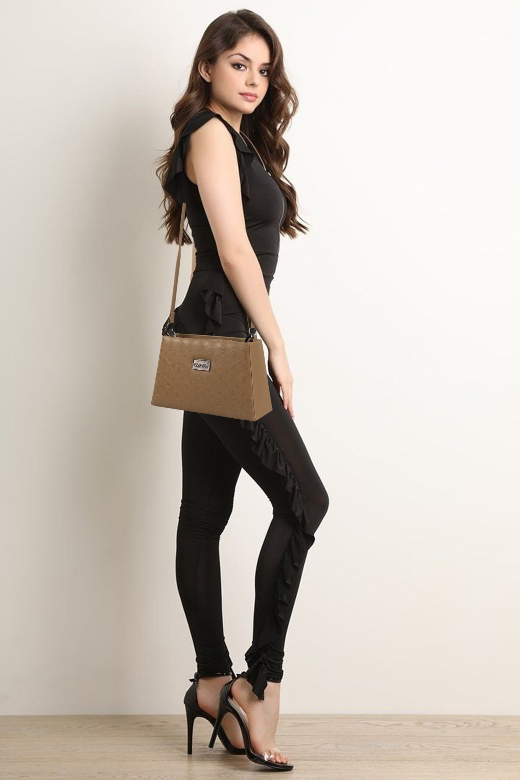 The Empire Fashion Monogram Embossed Structured Handbag in Khaki is a powerful statement of luxury, identity, and earthy sophistication. This is a bag that announces itself with quiet confidence — every surface rich with the iconic Empire Fashion all-over monogram embossing, every detail crafted with the precision of a brand that understands what true luxury means.
