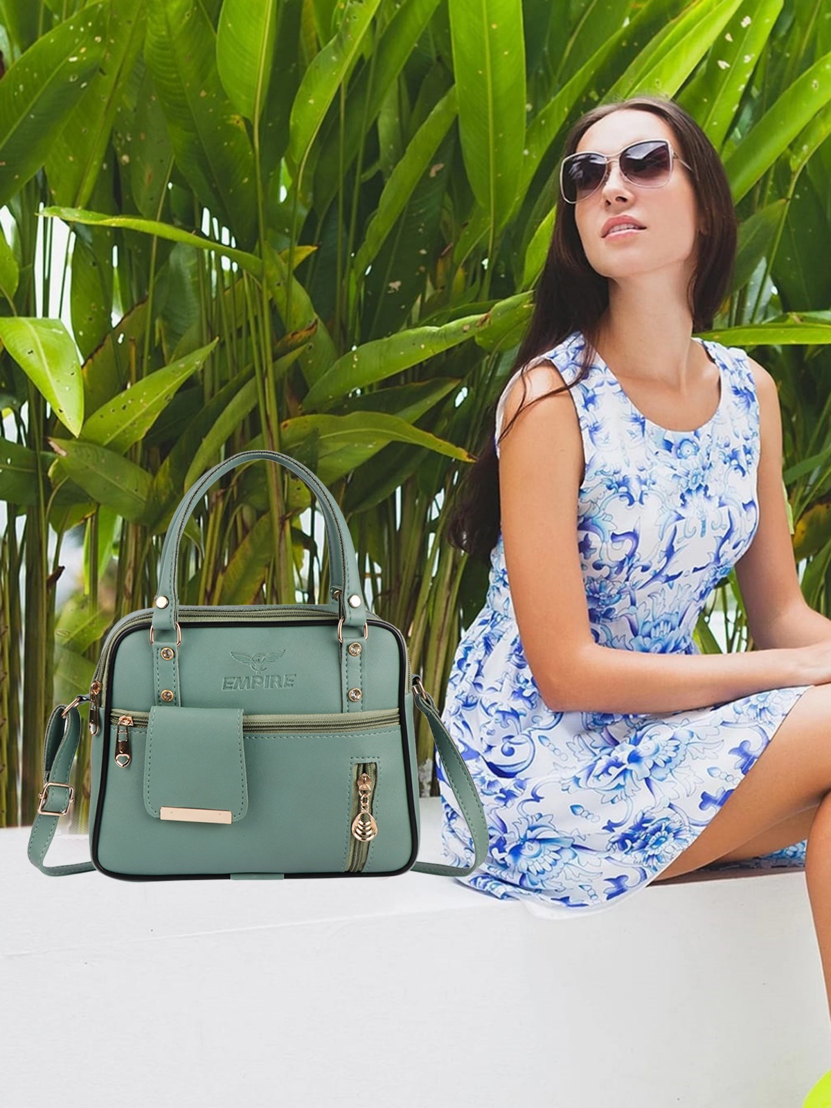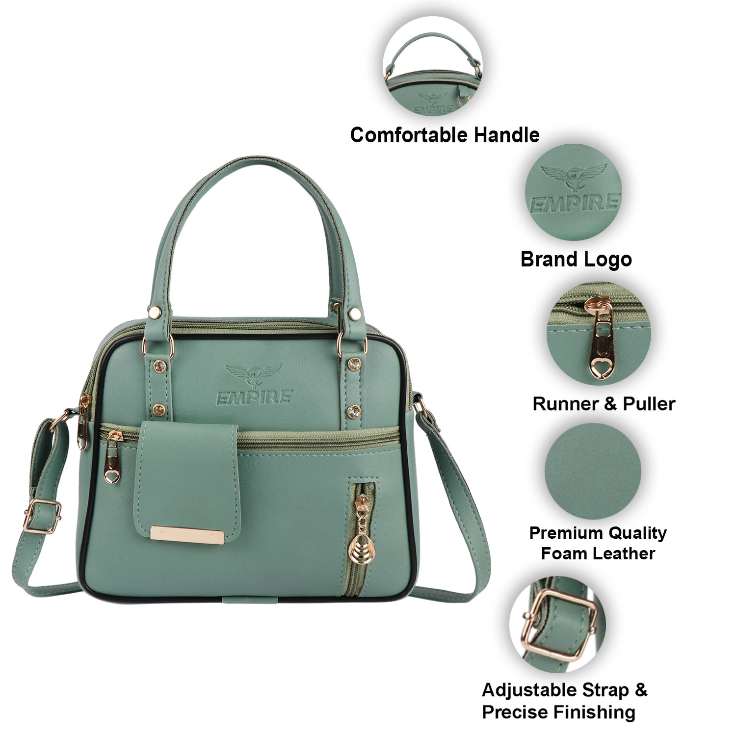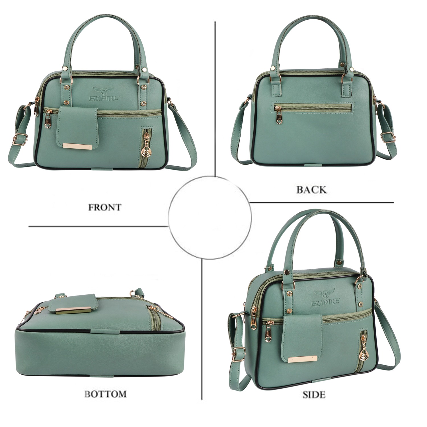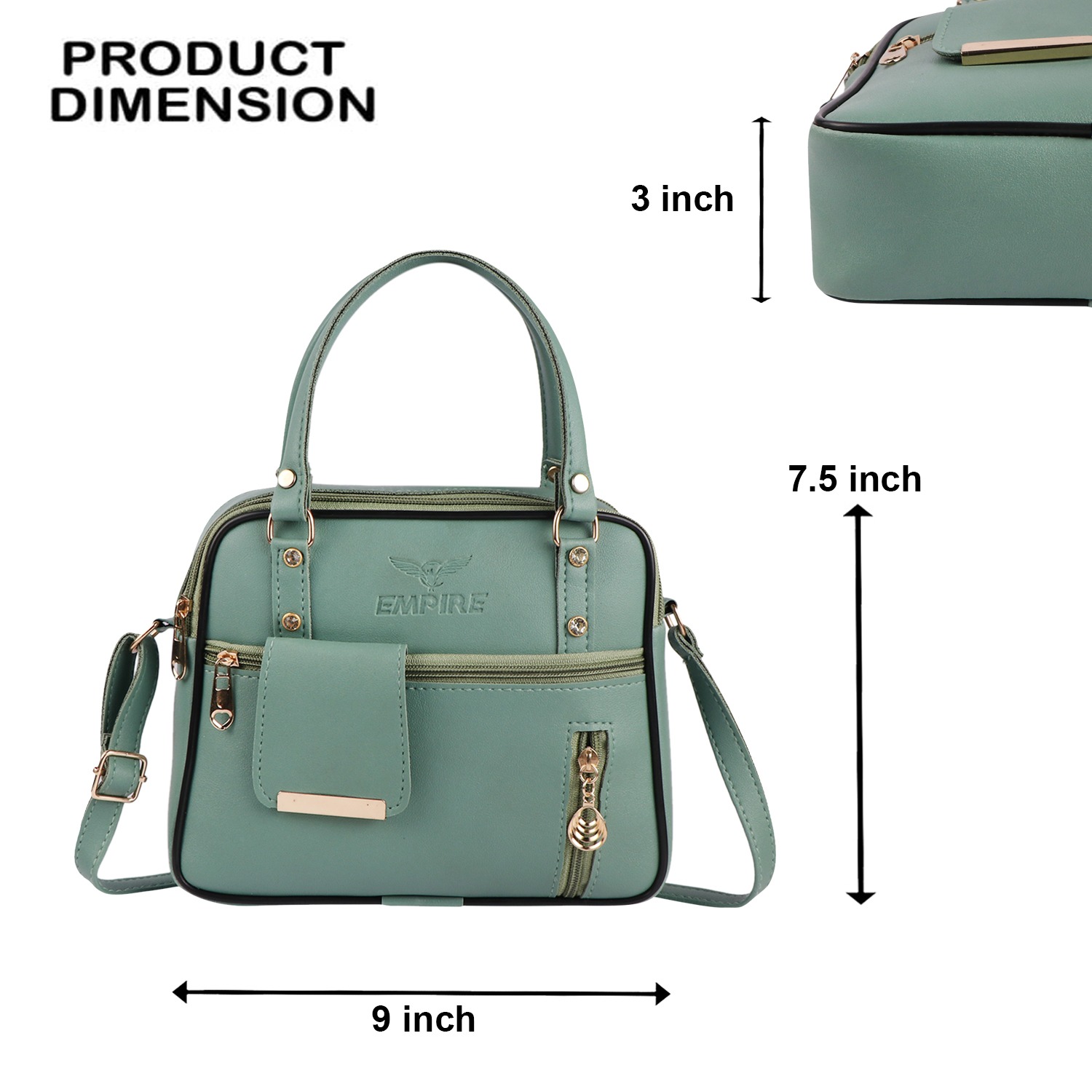 CAPACITY: 1 Roomy space with double sections and one zipper pocket, which Comfortably holds your Phone, wallet, cosmetic, power bank, water bottle (200 ml), umbrella, packed sandwich and other things.