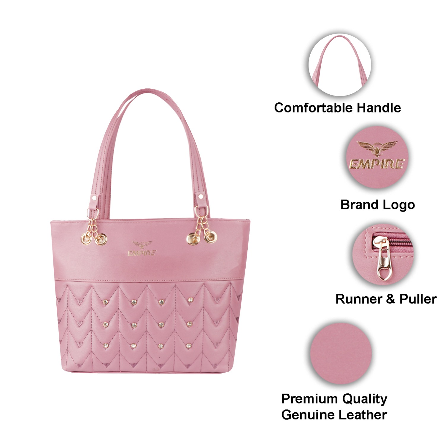 9Introducing the Empire Ladies Handbag Purses PINK- the epitome of style and functionality! With its timeless design and superior craftsmanship, this messenger bag is tailored to elevate your professional image while ensuring your essentials are kept safe and organized. Meticulously crafted from premium quality leather, the Ladies Handbag Purses PINK exudes elegance and sophistication. Its smooth texture and sleek appearance make it the perfect accessory for any occasion, be it a boardroom meeting or a casual outing. Designed with practicality in mind, this bag boasts optimal dimensions of 15 inches in length, 11 inches in height, and 3 inches in width, making it the ideal fit for 14 to 16-inch laptops.