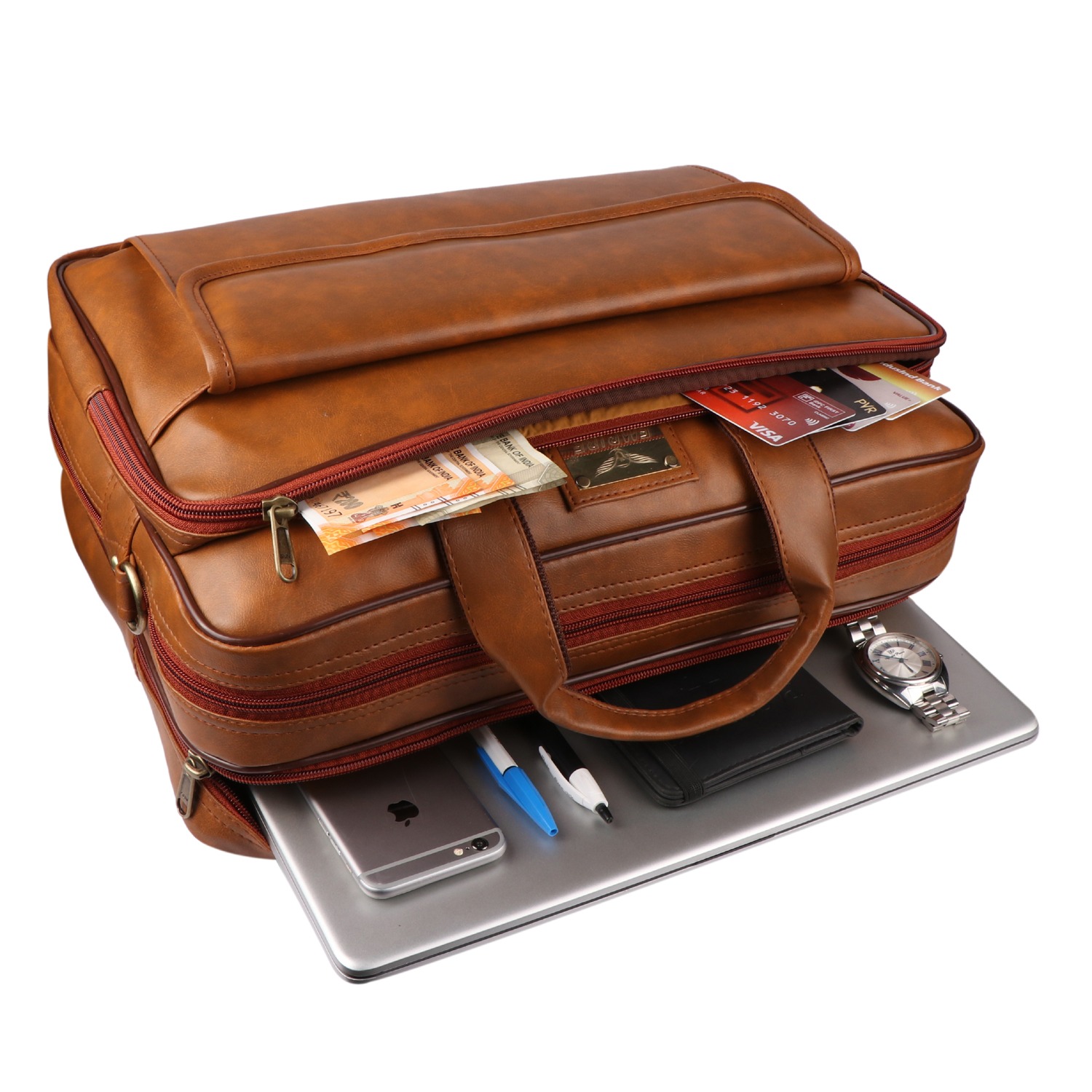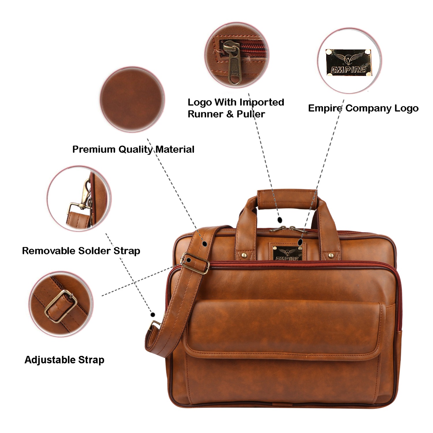 Introducing the Empire Office Messenger Laptop Bags TAN  – the epitome of style and functionality! With its timeless design and superior craftsmanship, this messenger bag is tailored to elevate your professional image while ensuring your essentials are kept safe and organized. Meticulously crafted from premium quality leather, the Empire Office Messenger Laptop Bags TAN exudes elegance and sophistication. Its smooth texture and sleek appearance make it the perfect accessory for any occasion, be it a boardroom meeting or a casual outing. Designed with practicality in mind, this bag boasts optimal dimensions of 15 inches in length, 11 inches in height, and 3 inches in width, making it the ideal fit for 14 to 16-inch laptops.