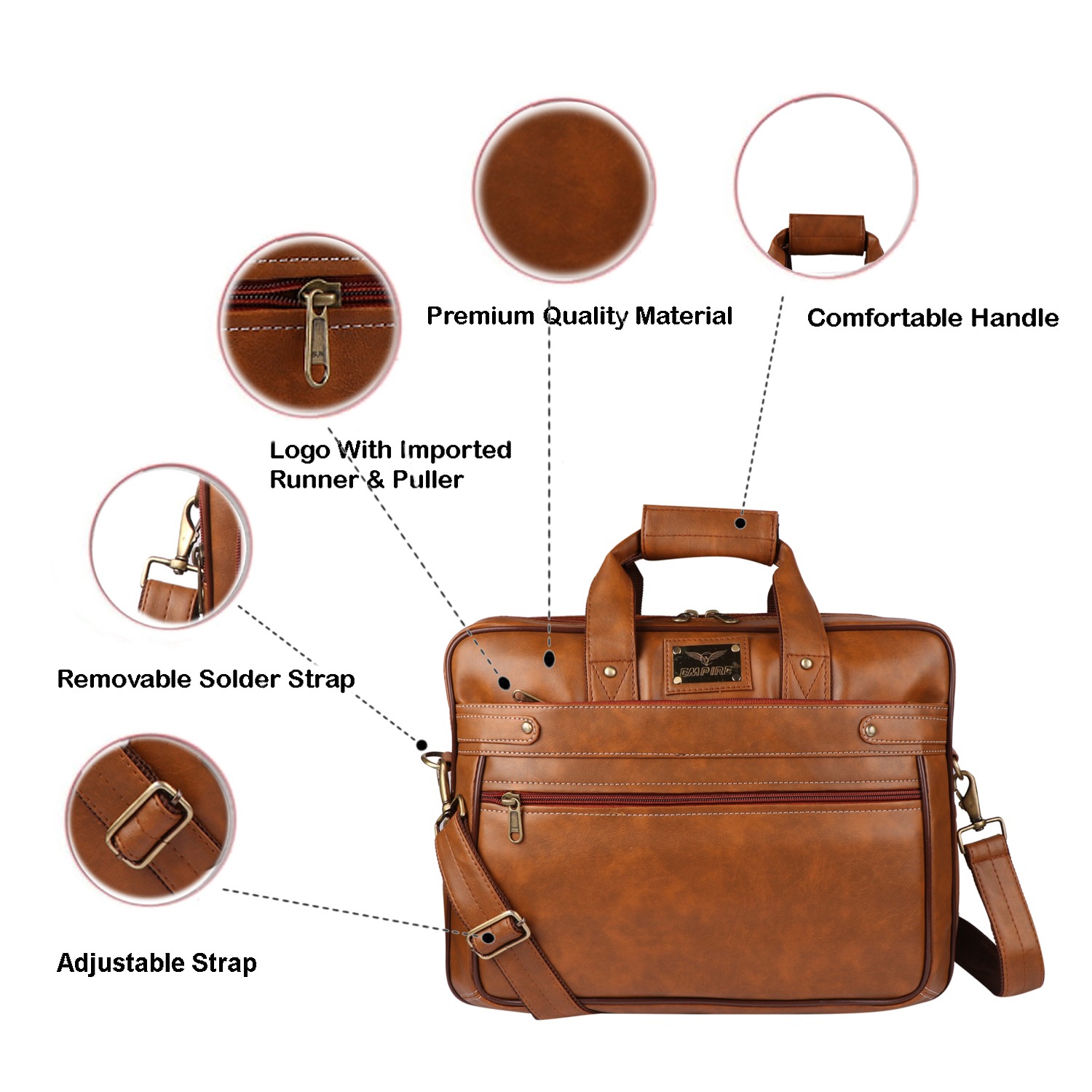 Introducing the Empire Office Messenger Laptop Bags TAN  – the epitome of style and functionality! With its timeless design and superior craftsmanship, this messenger bag is tailored to elevate your professional image while ensuring your essentials are kept safe and organized. Meticulously crafted from premium quality leather, the Empire Office Messenger Laptop Bags TAN exudes elegance and sophistication. Its smooth texture and sleek appearance make it the perfect accessory for any occasion, be it a boardroom meeting or a casual outing. Designed with practicality in mind, this bag boasts optimal dimensions of 15 inches in length, 11 inches in height, and 3 inches in width, making it the ideal fit for 14 to 16-inch laptops.